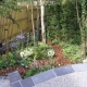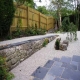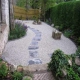 A slate path set in silver granite chippings leads from the front of the house to a new patio area at the side which catches the late afternoon and evening sun. Rocks have been carefully positioned in the gravel and the use of bamboo, Acers and flowering cherries adds to the Japanese feel.