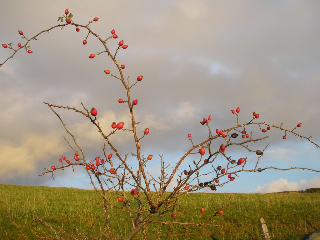 On a recent walk in the late afternoon sunshine I saw roses still in bloom, plus lovely berries on Cotoneaster horizontalis and rose hips glowing against the blue sky.